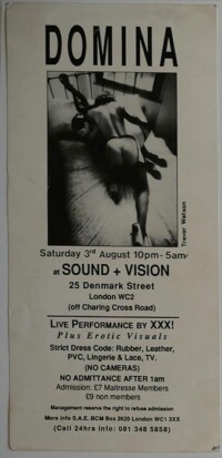 I’m featured a few times on flyers here in Pt2: Bound; ClubRub – Confessions In Uniform 2000; & Club Whiplash 1994. Plus there is also the flyer from The English Mansion’s Femdom Ball 2011 (featuring Miss Jessica Woods).