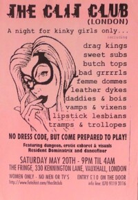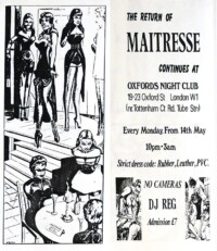 So in a world before the domination of the internet to find out about these underground fetish clubs and events you had to go into super sleazy soho sex shops to pick up a flier. Alternatively, there were a handful of fetish shops: SkinTwo in Ladbroke Grove, Little Shoebox & Zeitgeist near Highbury Corner were the London ones. Or you could get your name on their mailing list. Many of these events were technically ‘Members Clubs’ so you had to sign up and have a membership card to attend. You’d then receive a flyer with the details of the next event and usually a newsletter in the post via snail mail – promoters had to lick a lot of envelopes!