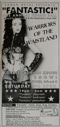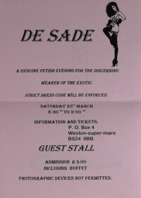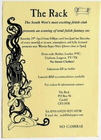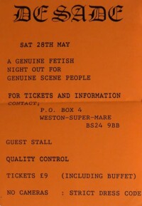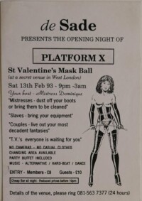 Given I had quite a stock of old fliers I thought it important to archive them here for posterity. I particularly chose very early fliers, or rarities; truly artistic masterpieces or subversive little gems. Alongside trying to get in at least one flier from every past fetish club of that era so that they are not lost forever.