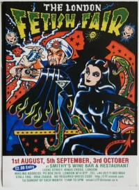 Fetish club fliers document an underground subversive movement that started at the end of the ’80s and continued into the noughties. The fetish club scene brought together a new generation of young people who wanted to challenge the status quo, to change attitudes to sex & sexuality, to gender and to our relationship with our own bodies. It was a perverted revolution exploring: sex, fetishism, BDSM; cross-dressing, gender bending/transgender notions; lesbian, gay & bi rights; feminism – women no longer in a passive sexual role for male pleasure but enjoying their bodies and sexualities. The fetish scene changed the world! Sexual politics and freedoms, fashion, body art, feminism, sex and sex work – all have been transformed over the last 30 years and for the better!