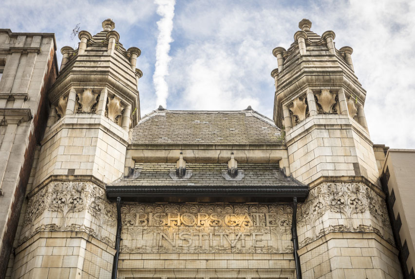 The Bishopgate Institute’s beautiful British Art Nouveau architecture – it even has turrets.