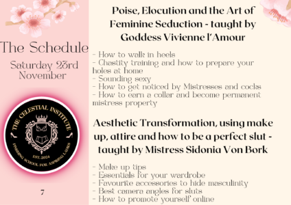 Mistress Vivienne & Celestial Studios are throwing open their opulent doors to those who have a deep desire to become more feminine. Hosted by experienced, strict & dominant ‘head’mistresses, all of whom are considered elite in the realms of XDressing, transformation expertise, slut training & kinky play.