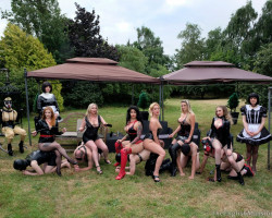 The day started with a slave meet and greet in the garden. Each sub in turn being brought before the illustrious coterie of experienced Dommes to be examined and humiliated!