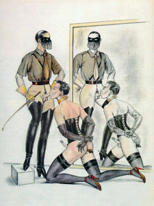 Anyone with an interest in femdom will no doubt have come across the erotic images of Bernard Montorgueil. Well I should say the ‘the works attributed to a Bernard Montorgueil’. This artist is a mysterious figure, his name is almost certainly a pseudonym. We know almost nothing about him or even when the art was produced. They have been dated as from the inter-war period the 1920s & ’30s, based on their style but it’s not definitive. And I say ‘his’ but ‘he’ could have been a ‘she’. It’s also not clear exactly how many images he produced, possibly 107, though there may be more. He was not just an artist but also an author, in the original manuscripts handwritten stories accompanied the illustrations. They were written in French leading to us to the presumption that he was French.
